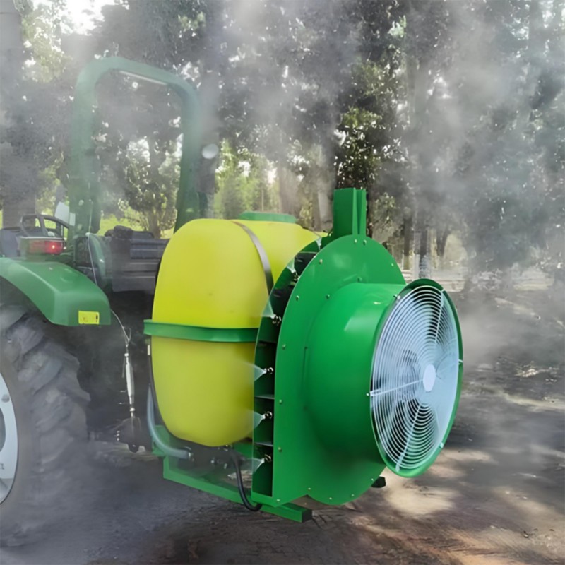เครื่องพ่นสารเคมีในสวนที่ติดตั้งเป็นเครื่องจักรขนาดใหญ่ที่เหมาะสำหรับการฉีดพ่นยาฆ่าแมลงในสวนผลไม้ขนาดใหญ่ มันมีข้อดีของคุณภาพสเปรย์ที่ดีการใช้ยาฆ่าแมลงต่ำการใช้น้ำต่ำและประสิทธิภาพการผลิตสูง ยิ่งไปกว่านั้นมันไม่ได้พึ่งพาความดันของปั๊มเหลวเพียงอย่างเดียวในการทำให้เป็นอะตอมยาของเหลว แต่ต้องอาศัยพัดลมเพื่อสร้างการไหลเวียนของอากาศที่แข็งแกร่งเพื่อเป่าหยดไปยังส่วนต่าง ๆ ของต้นไม้ผลไม้ การไหลเวียนของอากาศความเร็วสูงของพัดลมช่วยให้หยดเจาะทะลุกิ่งหนาแน่นและใบของต้นไม้ผลและยังทำให้ใบไม้พลิกกลับซึ่งจะเพิ่มอัตราการยึดเกาะของยาเหลวโดยไม่ทำลายกิ่งไม้ผลไม้หรือผลไม้